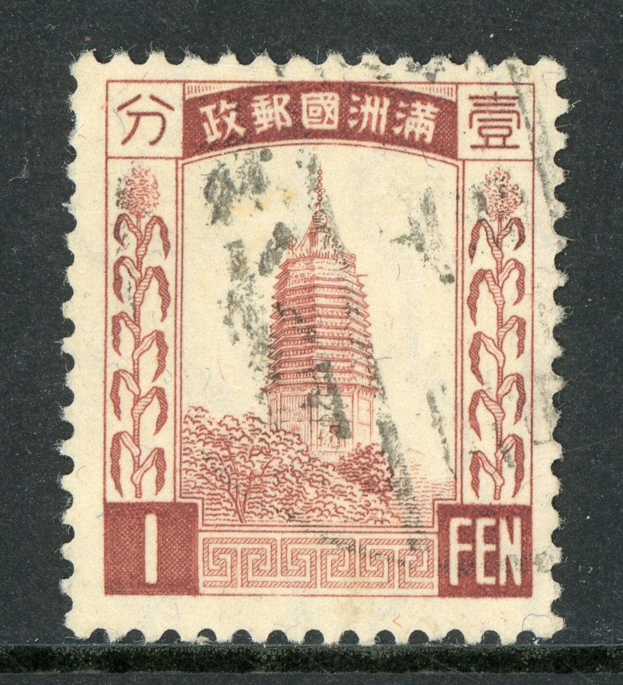 China 1934 Manchukuo 1 Fen Watermarked Scott #24 VFU O457