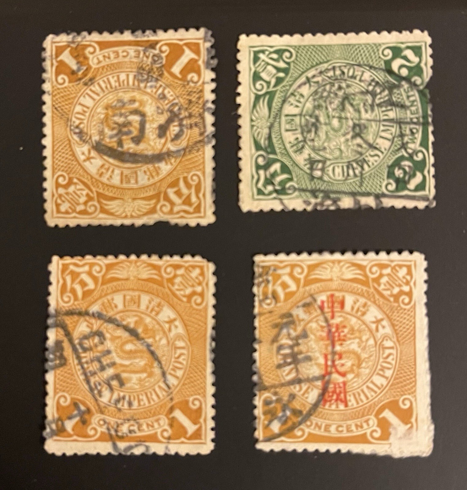 TangStamps: (4) CHINA Coiling Dragon Nice Cancel Faults 济南,江苏上海,烟台,元年