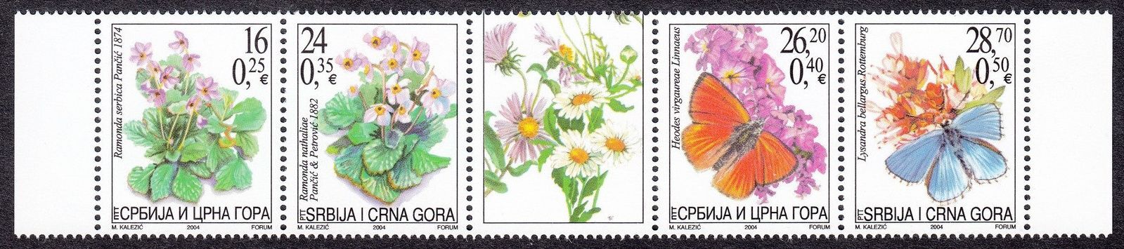 Serbia 2004 Flora and Fauna butterflies strip Mint never hinged **