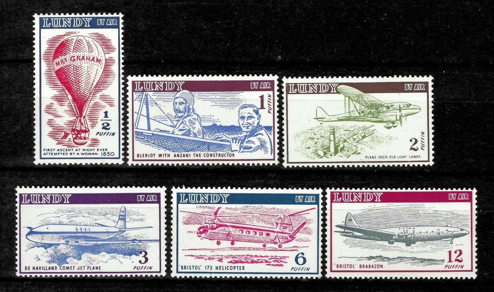 Great Britain Local Lundy island 1954 Planes Helicopters MNH**
