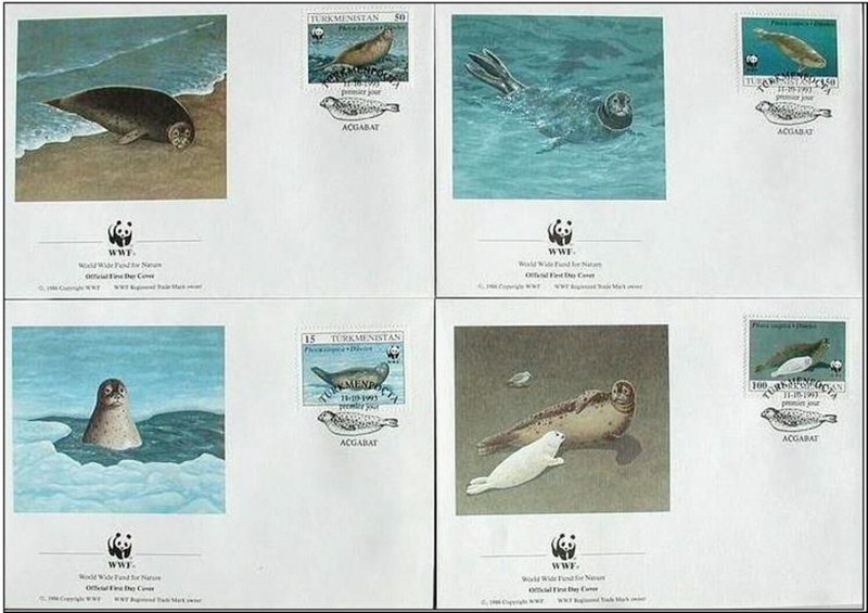 Turkmenistan 1993 W.W.F. - Fauna SEAL - MARINE LIFE 4x FDC