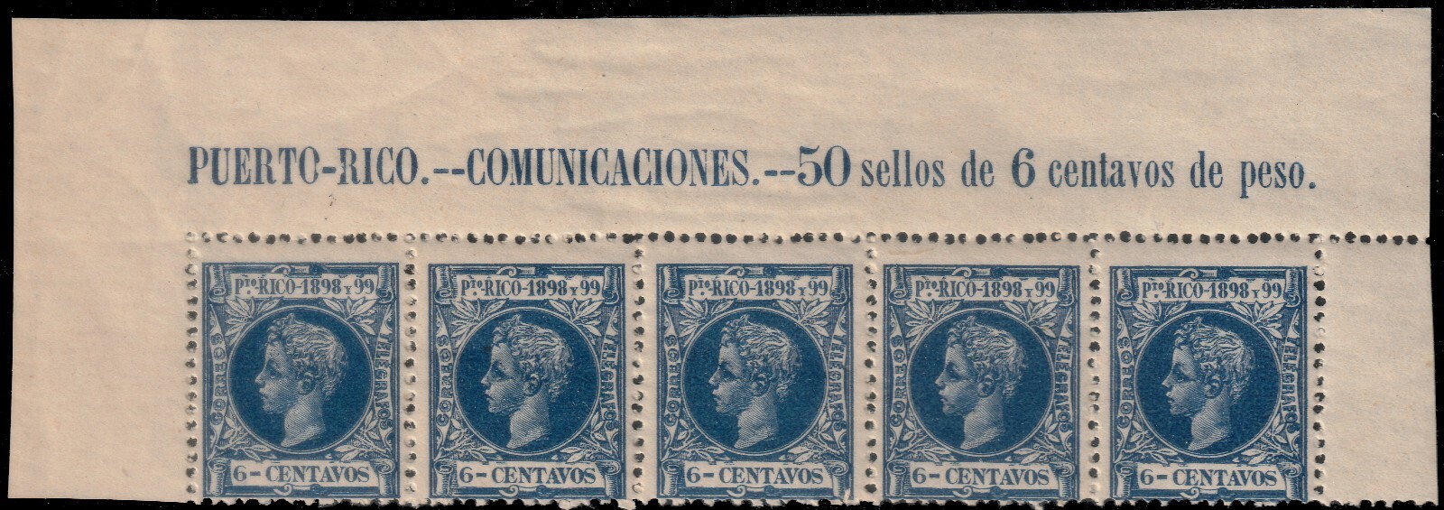 ️ US POSSESSIONS PUERTO RICO 1898 - ALFONSO XIII - SC. 145 MNH IMPRINT
