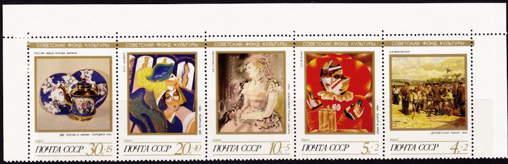 Russia B160-64 MNH ◊ Porcelain & Paintings Strip of 5 [1989]
