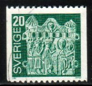 pilgrim's badge adoration of the magi, sweden stamp sc#1174 used.